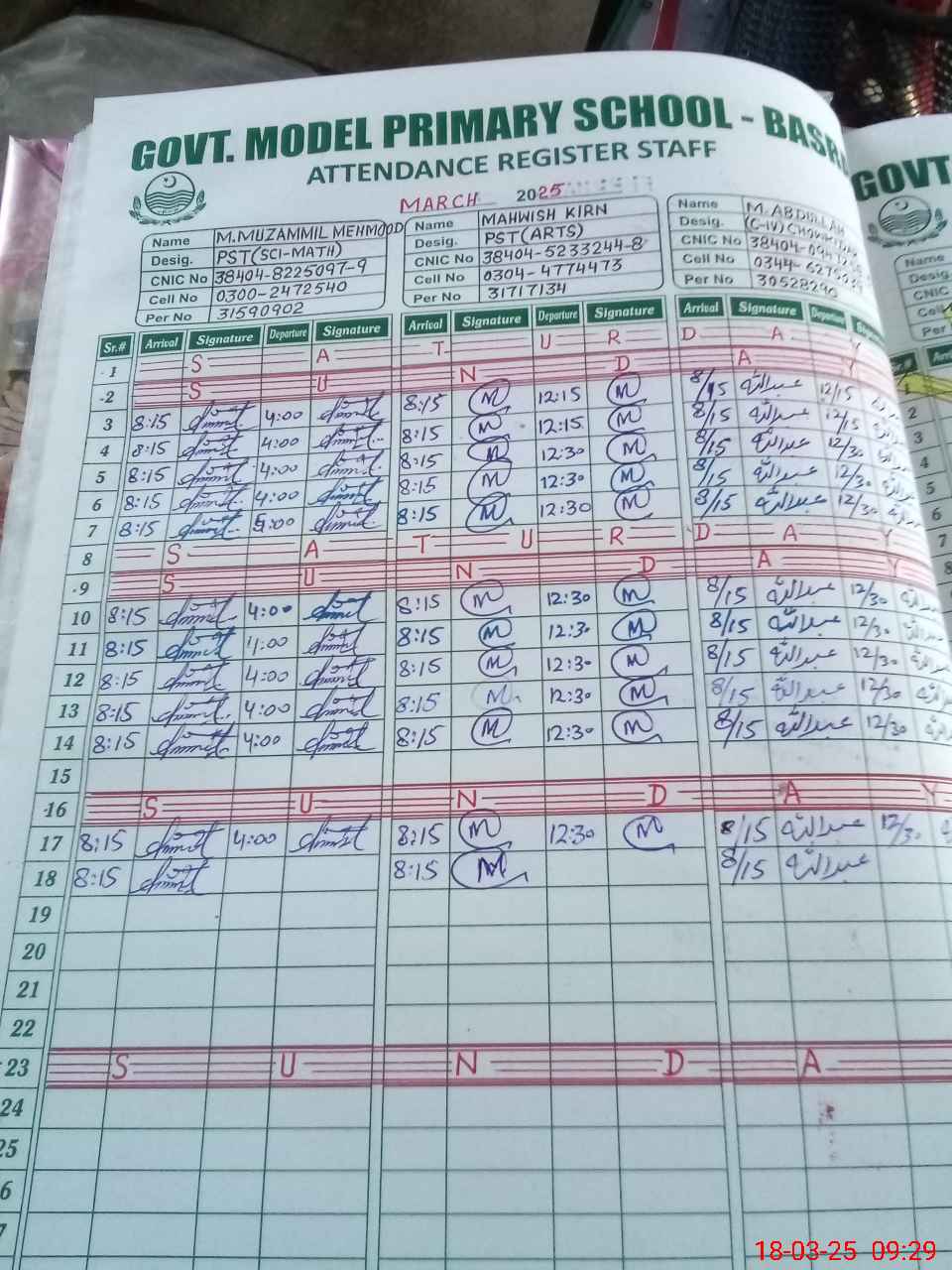 | Name: MU**** MU**** Designation: (School Headmaster's/Headmistress's) PST Phone/Cell Number: 03**** |