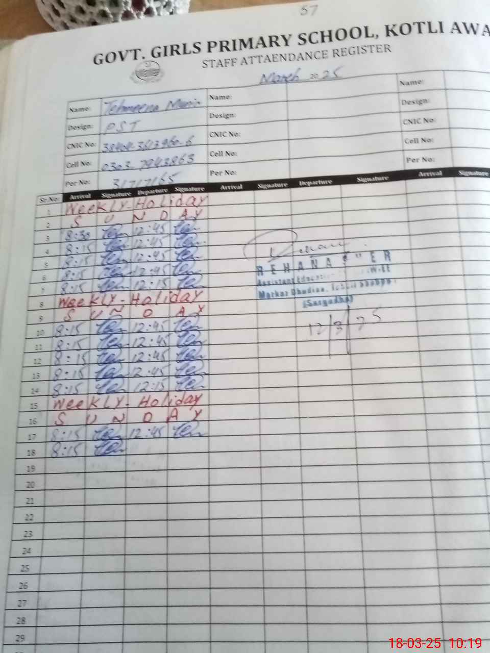 | Name: TE**** MU**** Designation: (School Headmaster's/Headmistress's) PST Phone/Cell Number: 03**** |