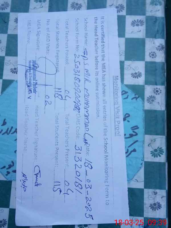 | EMIS Code: 31320181 | Name of School: GPS MIR MUHAMMAD LAR | |||