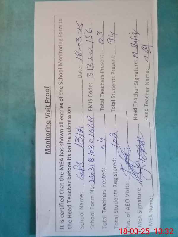| EMIS Code: 31320156 | Name of School: GPS CHAK NO. 13/A | |||