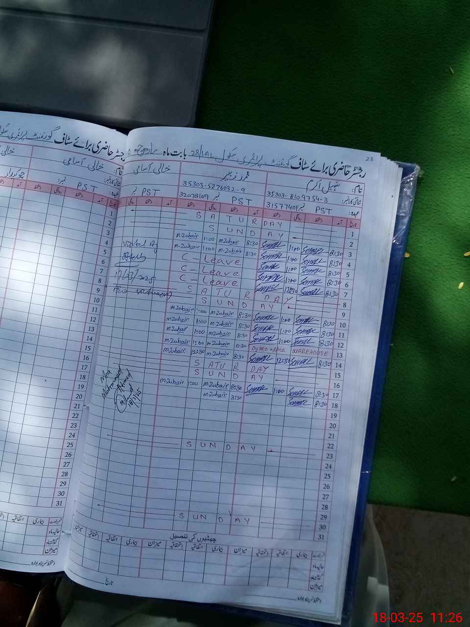 | CNIC | Full Name | Designation | R/C | Absence During Last Calender Month |