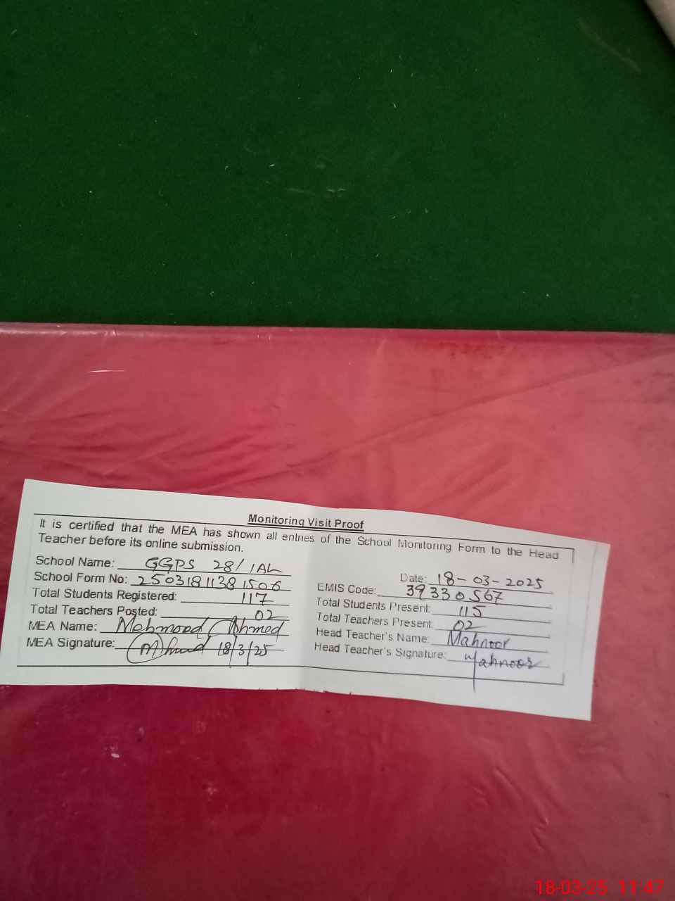 | Certified that this School was Inspected by the Undersigned MEA/DMO Today and the Information Stated Above is as Per Record. | |||||