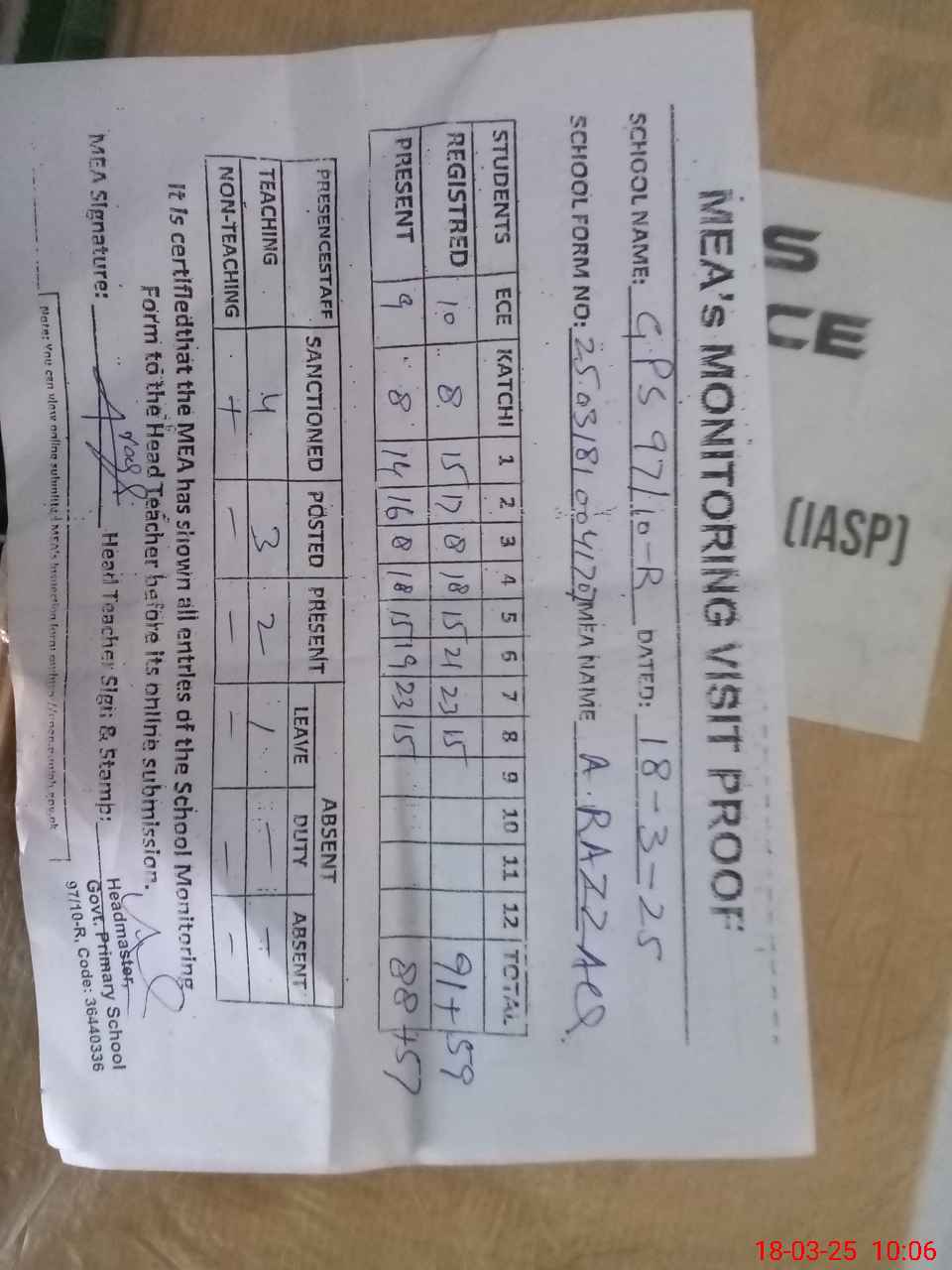 | EMIS Code: 36440336 | Name of School: GPS 97/10-R, JAHANIAN | |||