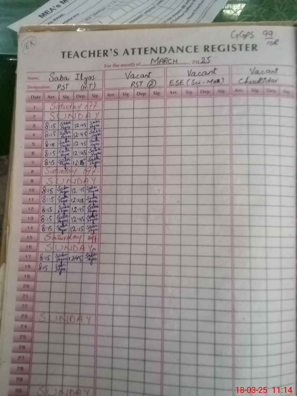| Name: Sa**** Il**** Designation: (School Headmaster's/Headmistress's) ESE (SCI-MATH) Phone/Cell Number: 03**** |