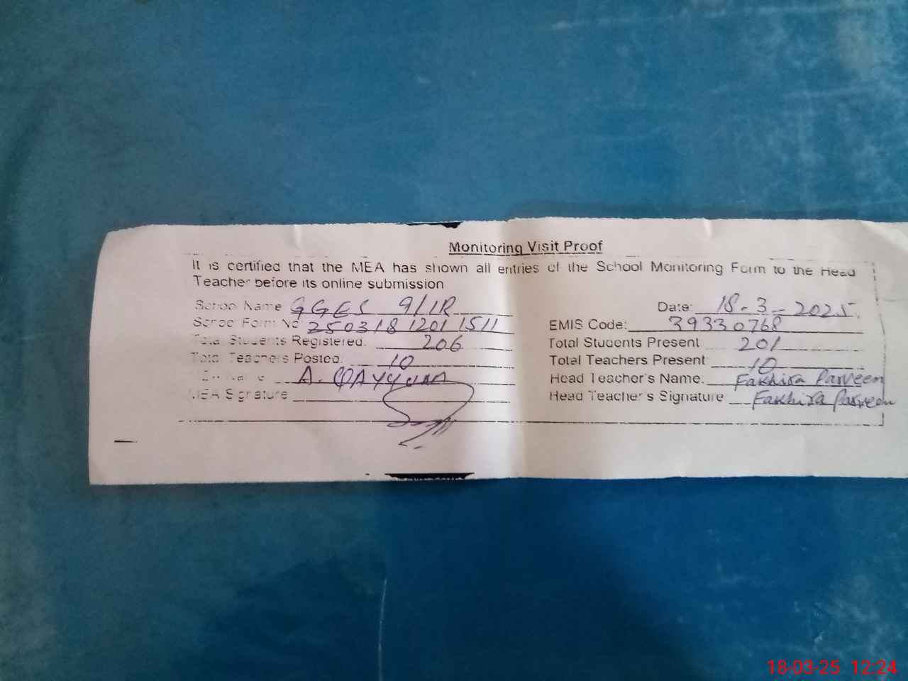 | EMIS Code: 39330768 | Name of School: GGES CHAK NO. 9/1-R | |||