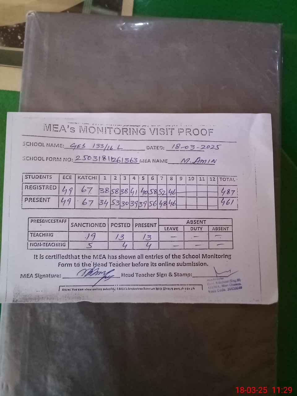 | EMIS Code: 36430049 | Name of School: GES 133/16-L, MIAN CHANNU | |||
