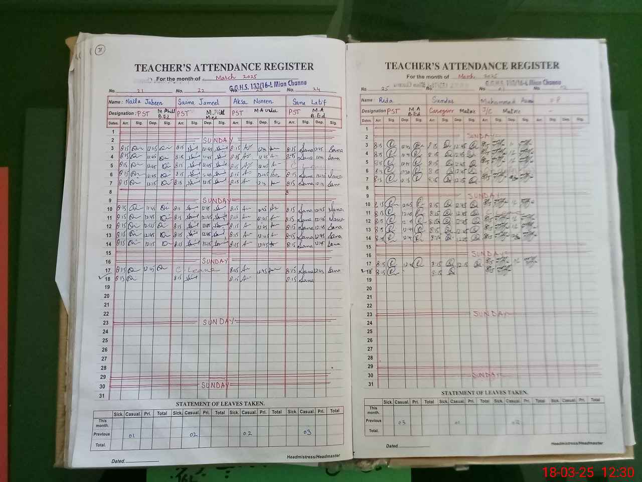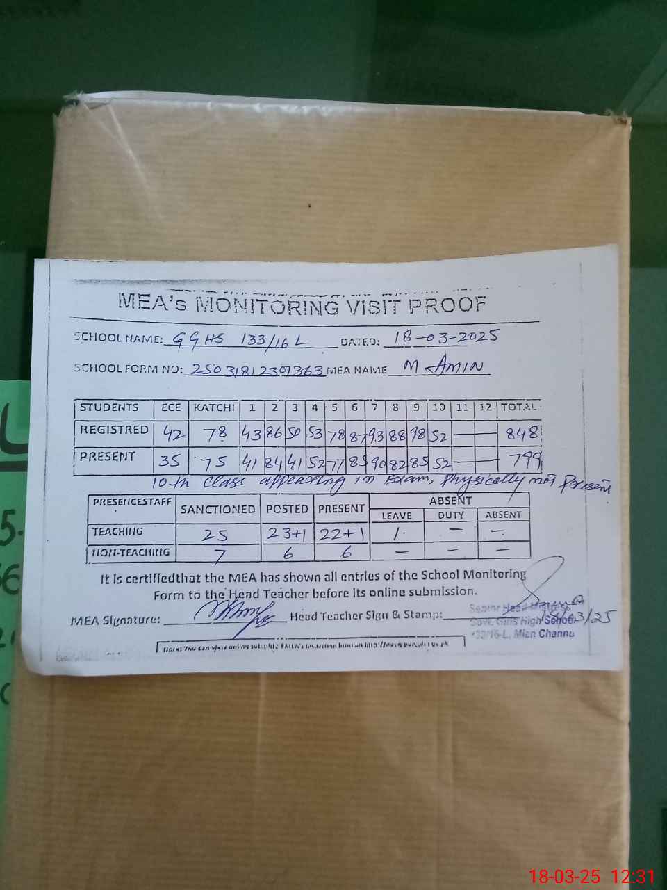 | Attendance Register | Head Teacher | MEA with School | Visit Proof |