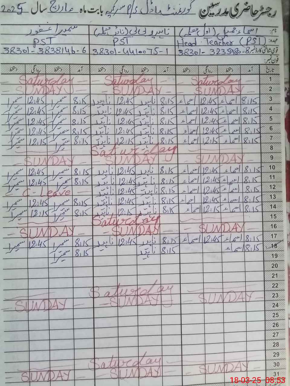 | Name: Is**** Ja**** Designation: (School Headmaster's/Headmistress's) PST Phone/Cell Number: 03**** |