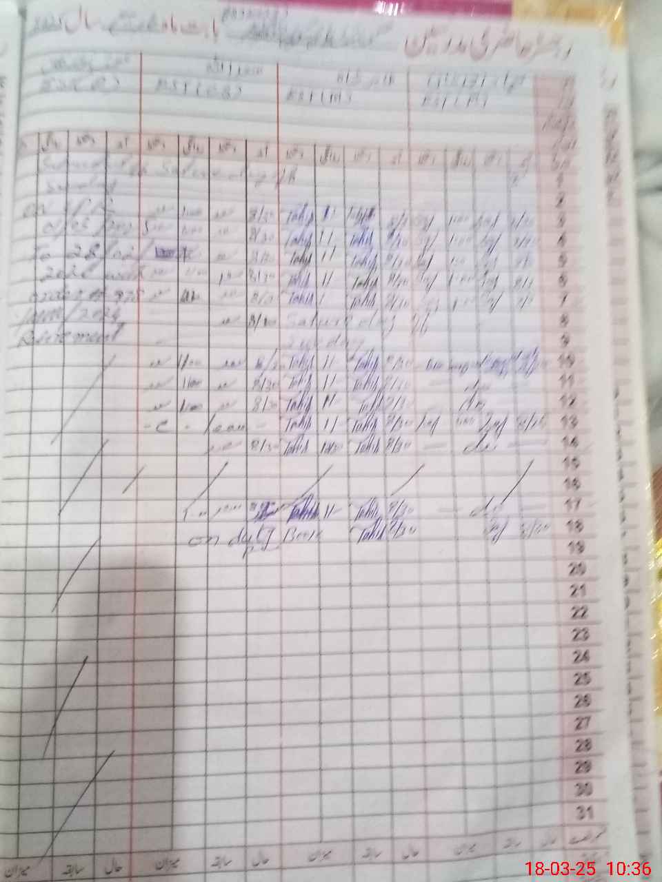 | CNIC | Full Name | Designation | R/C | Absence During Last Calender Month |