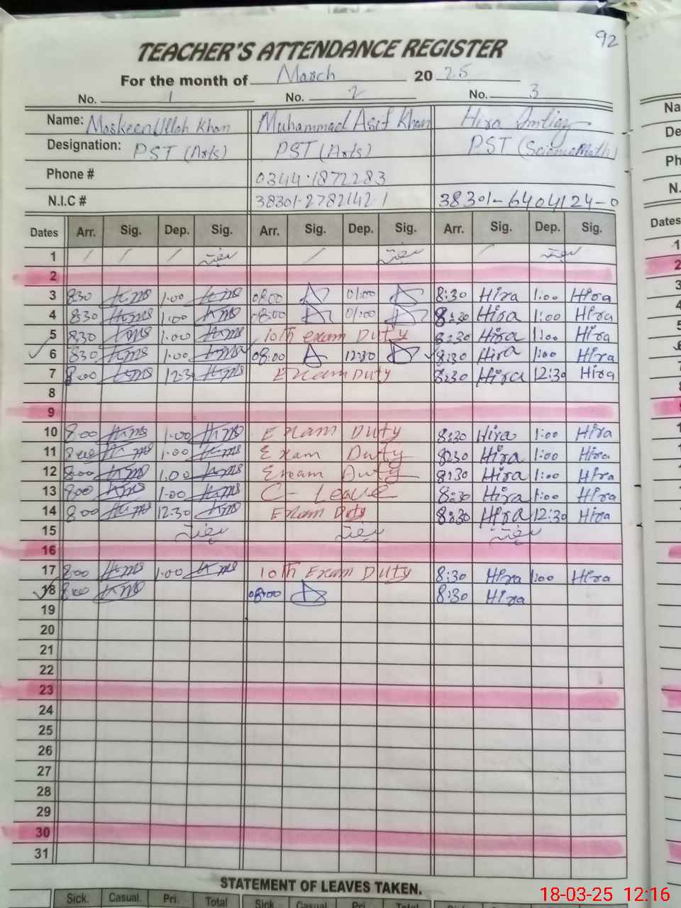 | Name: Ma**** Ul**** Kh**** Designation: (School Headmaster's/Headmistress's) PST/PTC/JV Phone/Cell Number: 03**** |