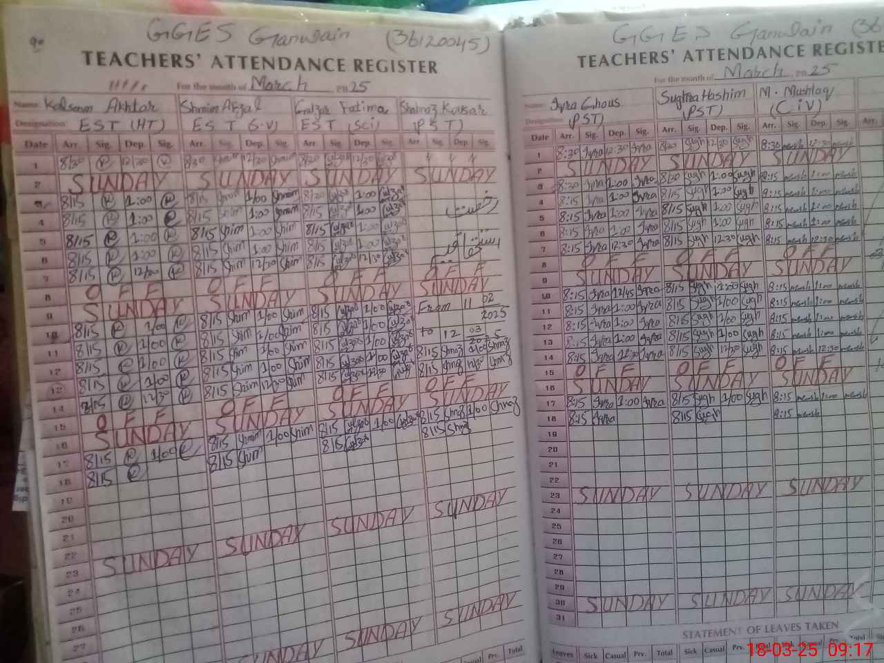 | EMIS Code: 36120045 | Name of School: GGES GANWAIN SHUJABAD | |||