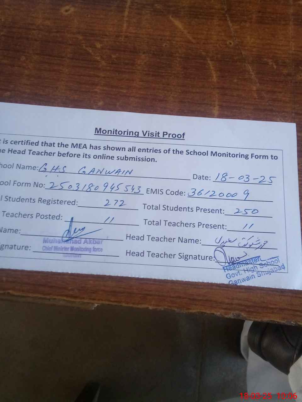 | EMIS Code: 36120009 | Name of School: GHS GAWAIN MOZA GANWEN TEH. SHUJABAD | |||