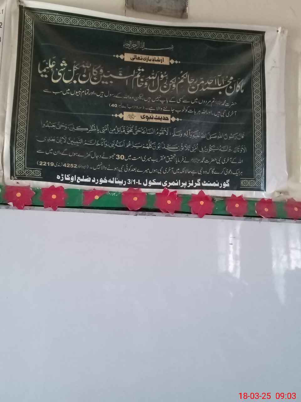 | District: OKARA | Tehsil: RENALA KHURD | Markaz: KISAN-FEMALE | Level: Primary | |