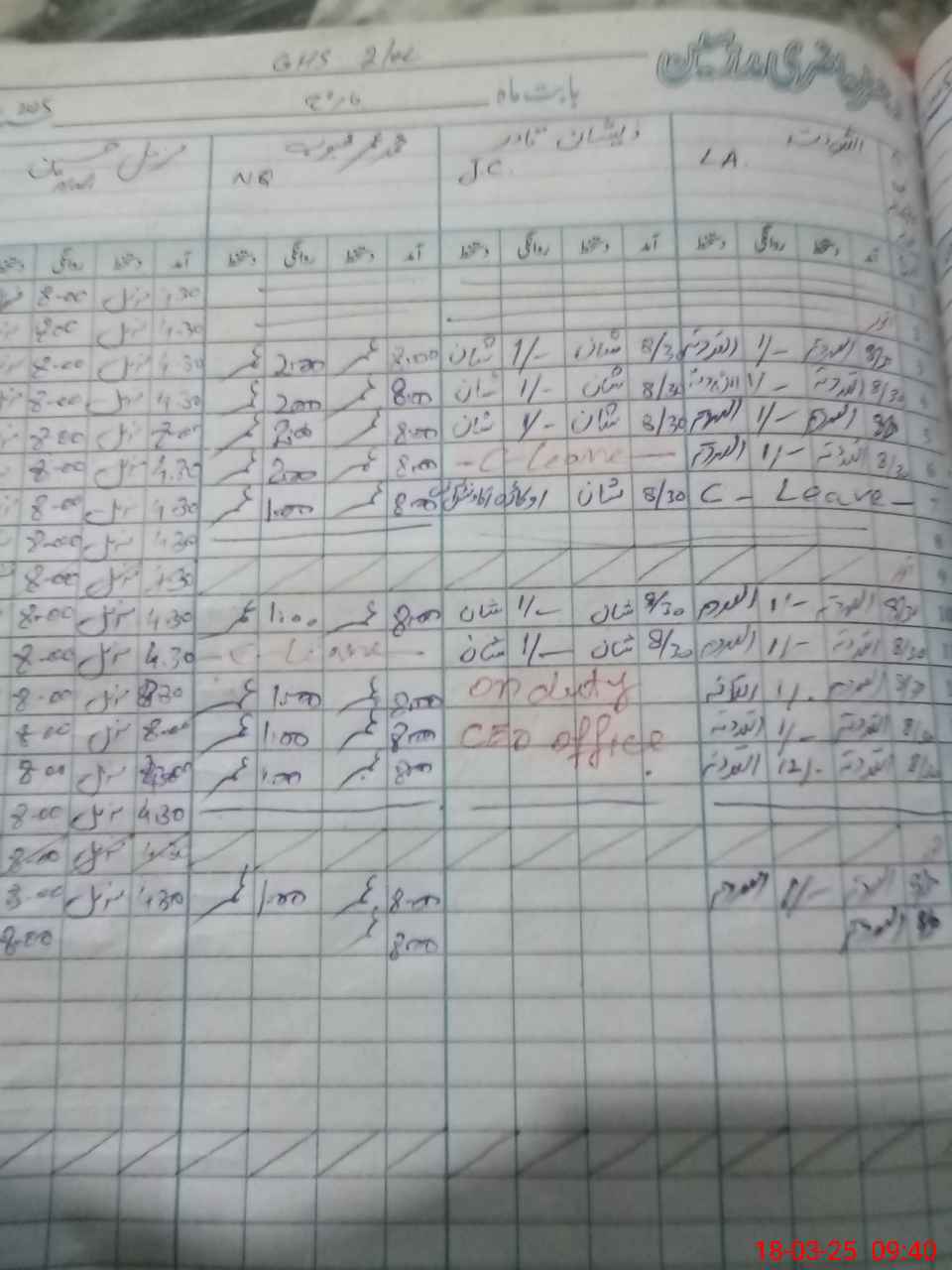 | CNIC | Full Name | Designation | R/C | Absence during last cal. month |
