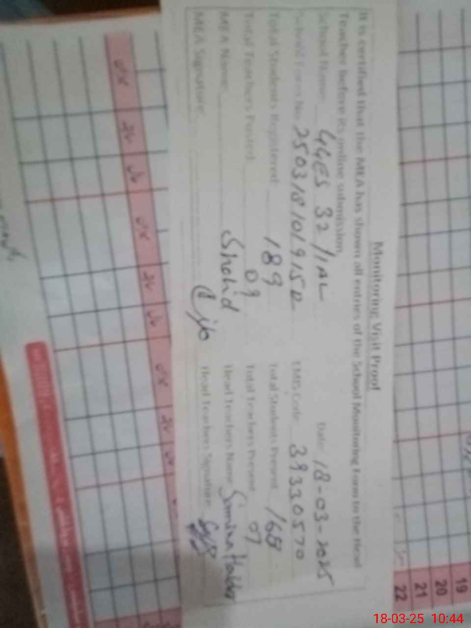 | Attendance Register | Head Teacher | MEA with School | Visit Proof |
