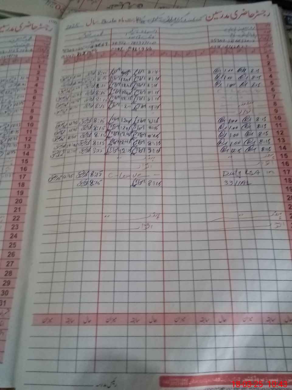 | CNIC | Full Name | Designation | R/C | Absence During Last Calender Month |