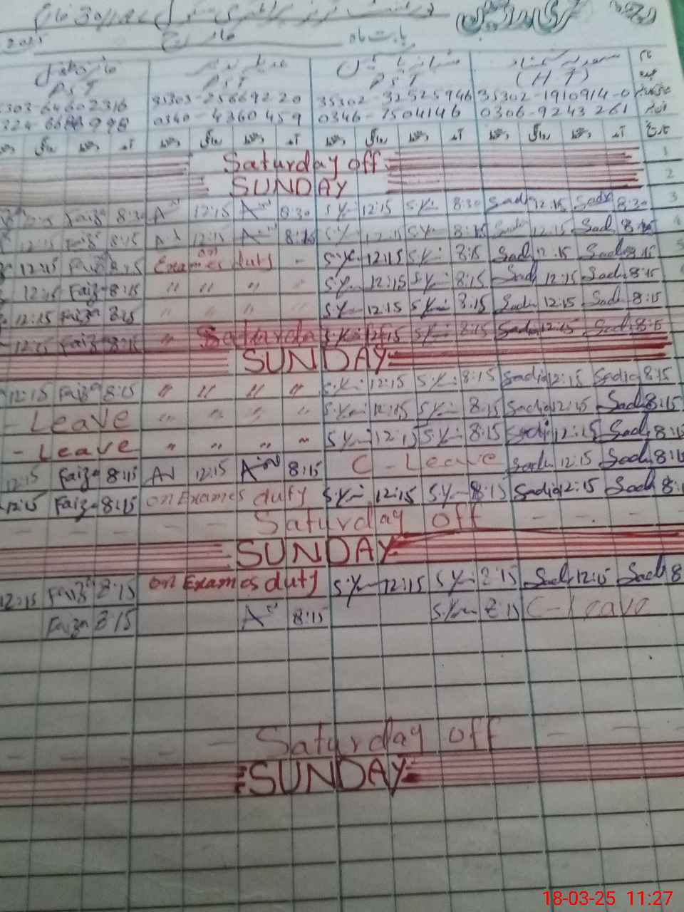 | Leave | Duty | Absent | Maternity | Medical | Ex- Pak |