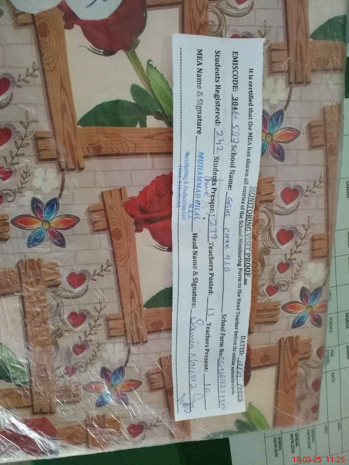 | EMIS Code: 38460587 | Name of School: GGHS CHAK NO.9 SB | |||