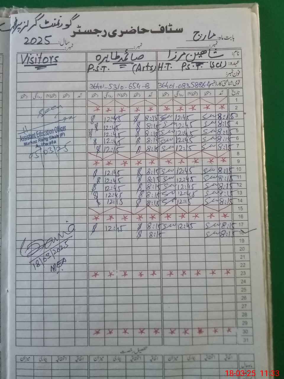 | Name: SH**** MI**** Designation: (School Headmaster's/Headmistress's) PST Phone/Cell Number: 03**** |