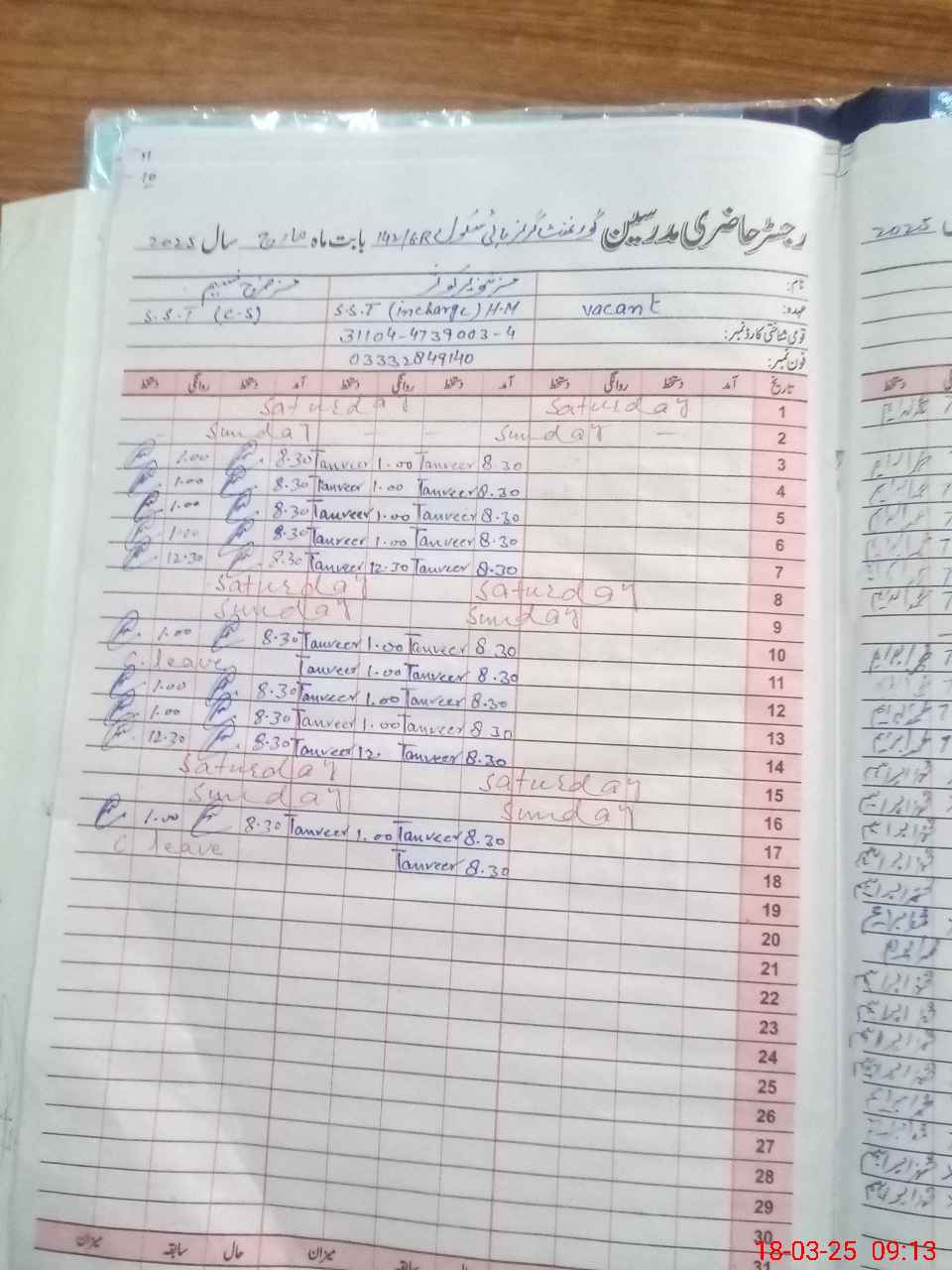 | Name: Ta**** Ko**** Designation: (School Headmaster's/Headmistress's) Sat I C Phone/Cell Number: 03**** |