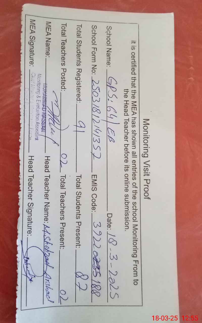 | EMIS Code: 39220188 | Name of School: GPS 64 EB ARIFWALA | |||