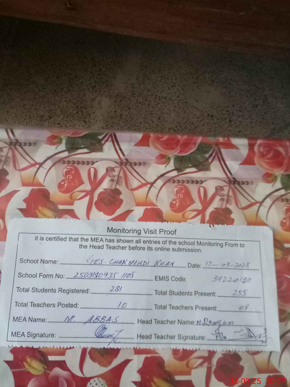| EMIS Code: 39220130 | Name of School: GES MEHDI KHAN | |||