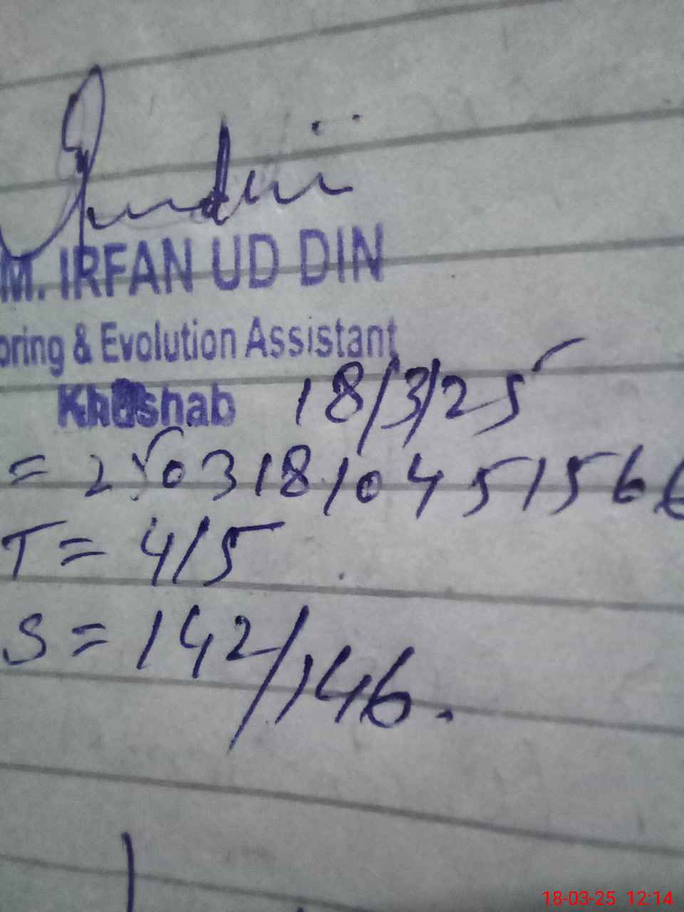 | Name: Ha**** Su**** Designation: (School Headmaster's/Headmistress's) PST Phone/Cell Number: 03**** |