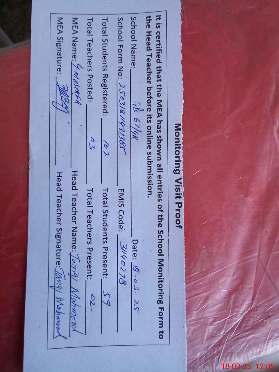| EMIS Code: 31140278 | Name of School: GPS CHAK NO.66/4-R | |||
