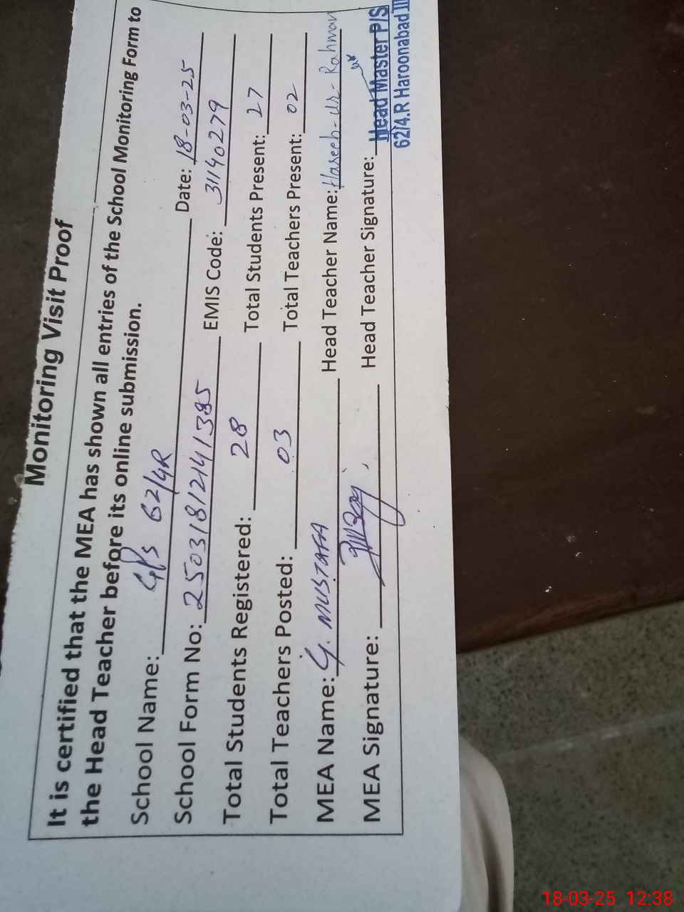 | EMIS Code: 31140279 | Name of School: GPS CHAK NO.62/4-R | |||