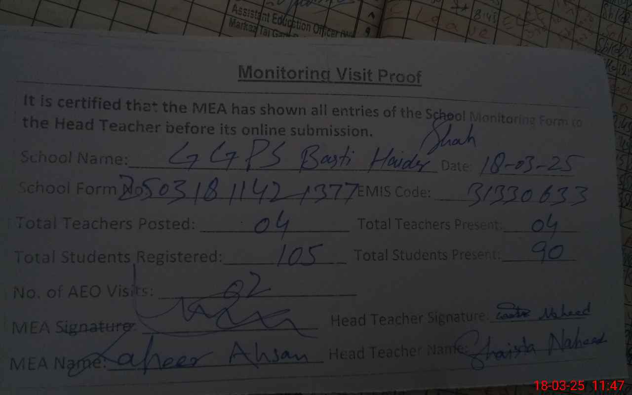 | EMIS Code: 31330633 | Name of School: GGPS BASTI HYDER SHAH | |||