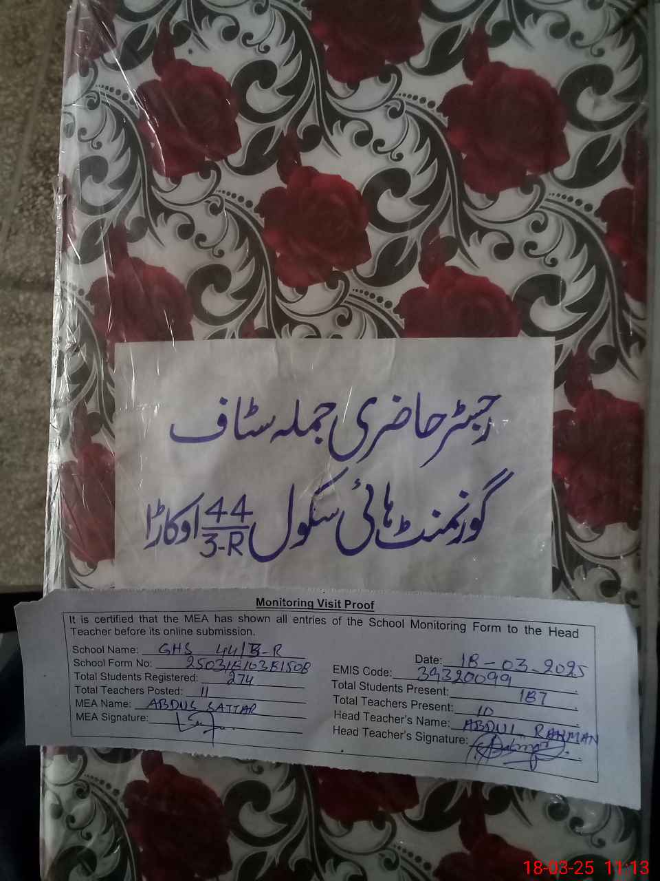| EMIS Code: 39320099 | Name of School: GHS CHAK 44/3-R | |||