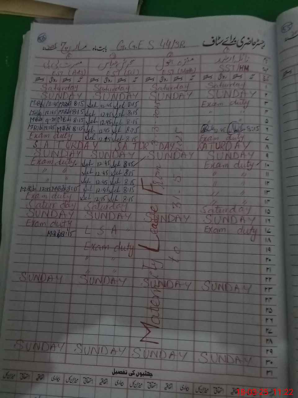 | 35**** | Na**** Ar**** | SST | Regular | 0 | 0 | 0 | 0 | 0 | 0 | 0 | 0 | 0 | Exam Duty |