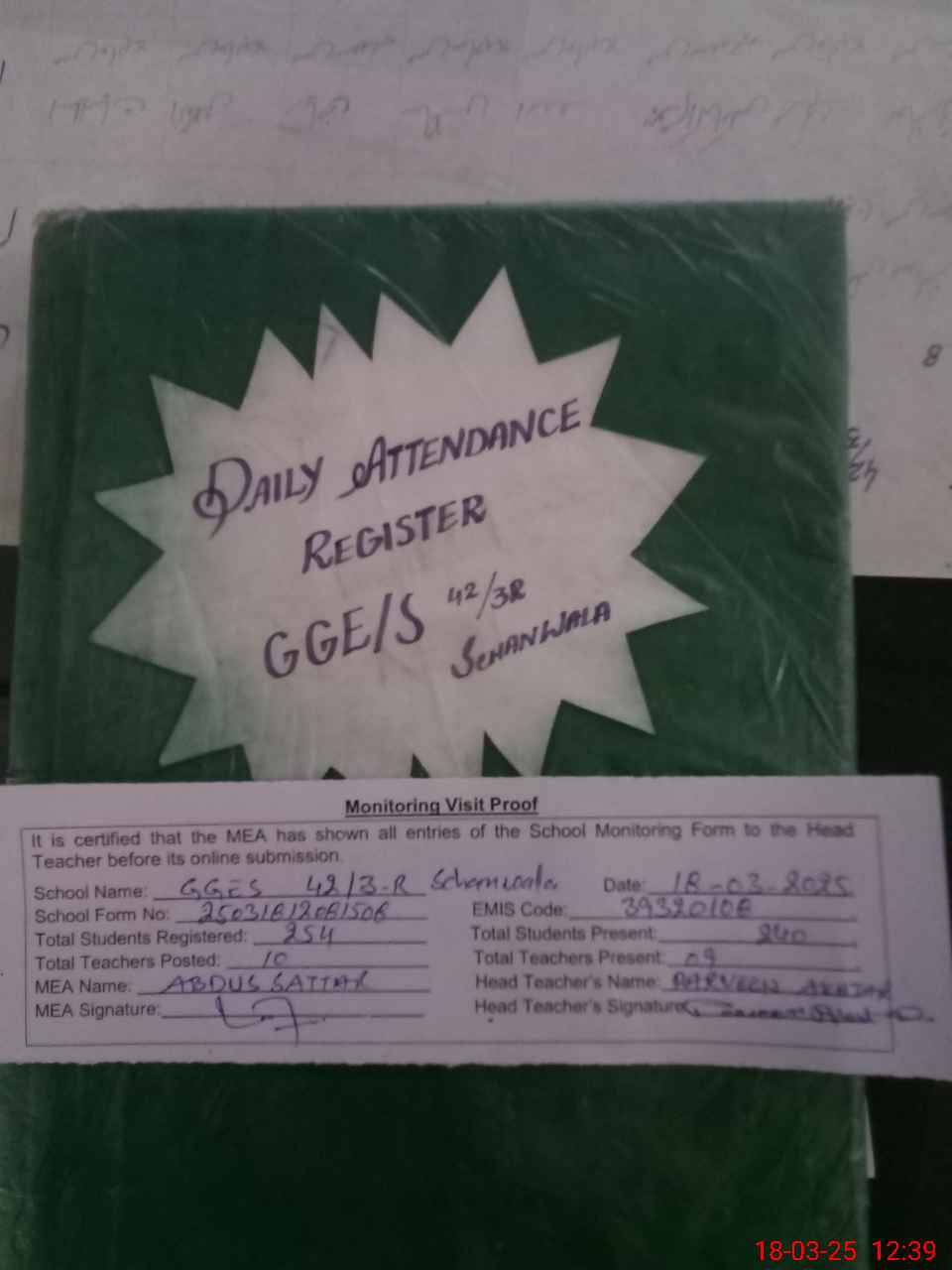 | EMIS Code: 39320108 | Name of School: GGES CHAK NO.42/3-R SACHAN WALA | |||