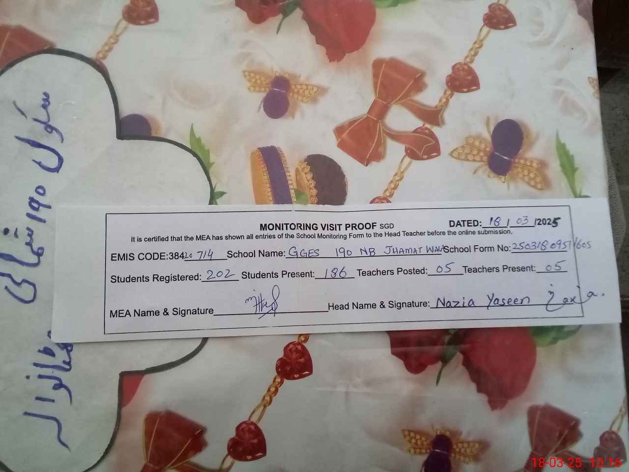 | EMIS Code: 38420714 | Name of School: GGES CHAK NO.190 NB JHAMAT WALA | |||