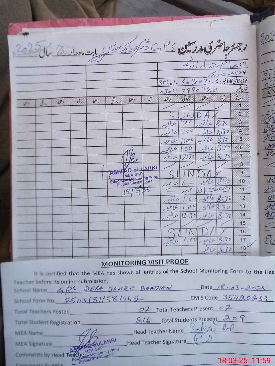 | EMIS Code: 35420233 | Name of School: GPS DERA JAMKE BHATTIAN | |||