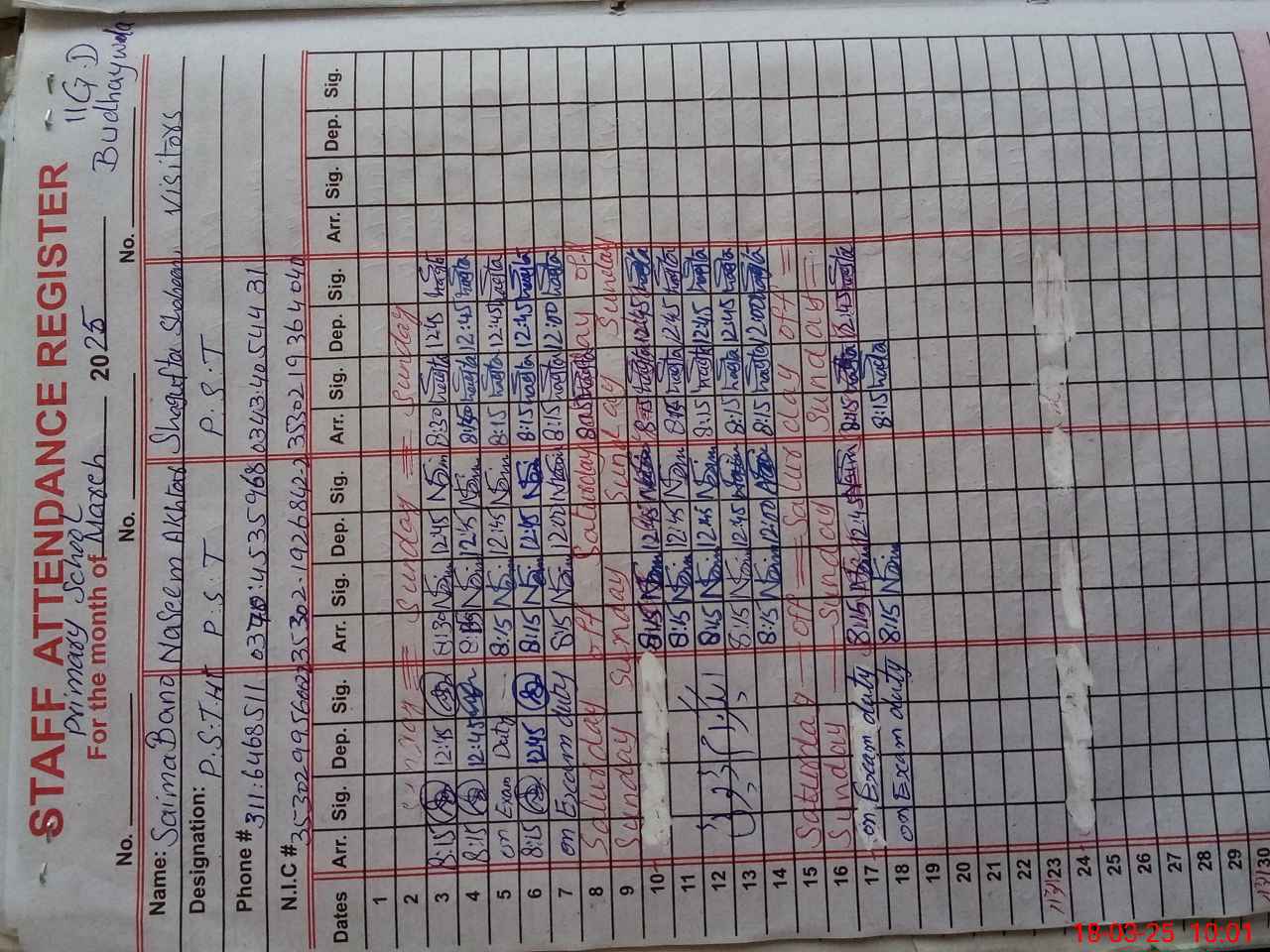 | 35**** | Sa**** Ba**** | PST | Regular | 0 | 0 | 0 | 0 | 0 | 0 | 0 | 0 | 0 | Exam Duty |