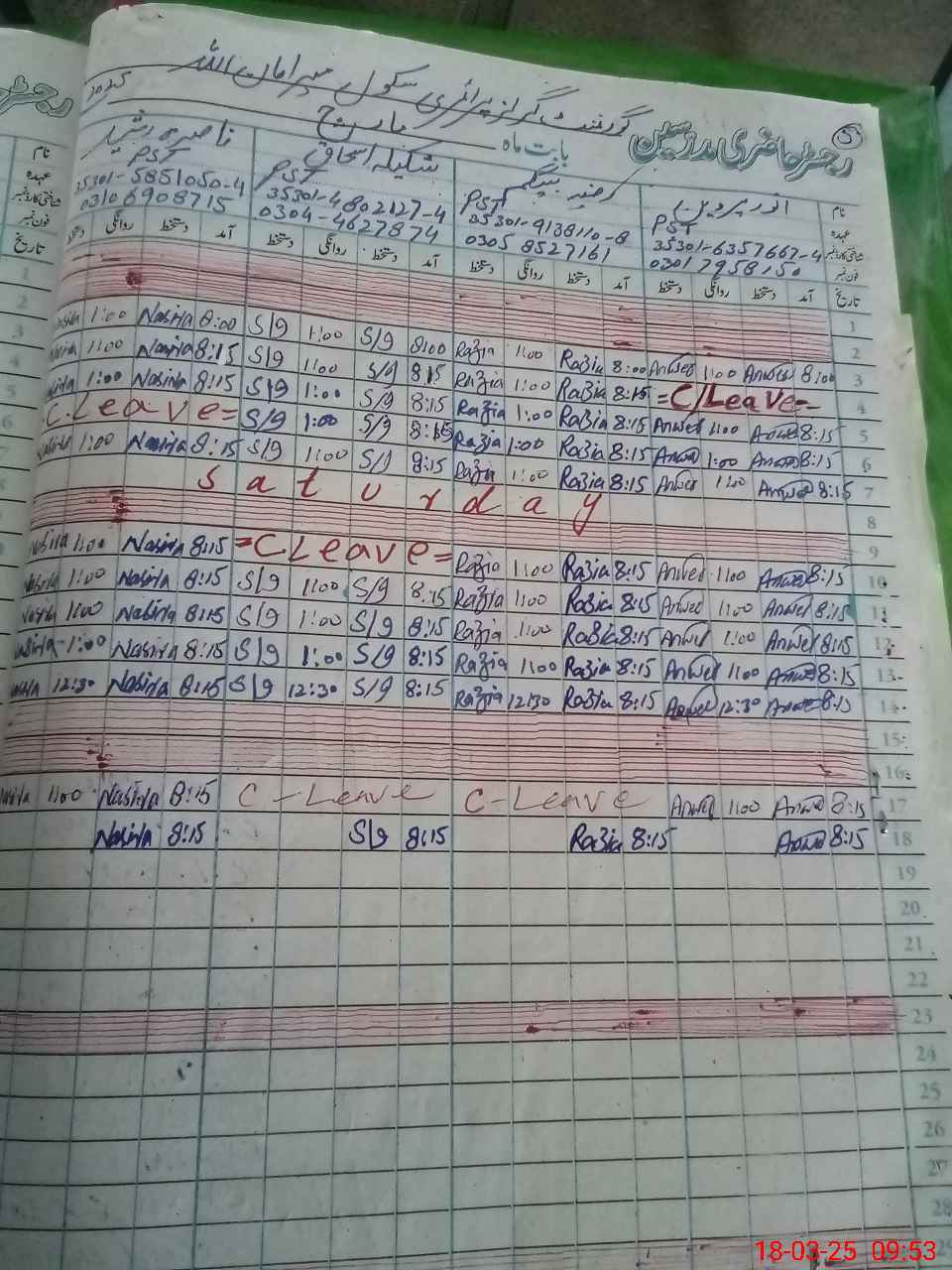 | CNIC | Full Name | Designation | R/C | Absence During Last Calender Month |