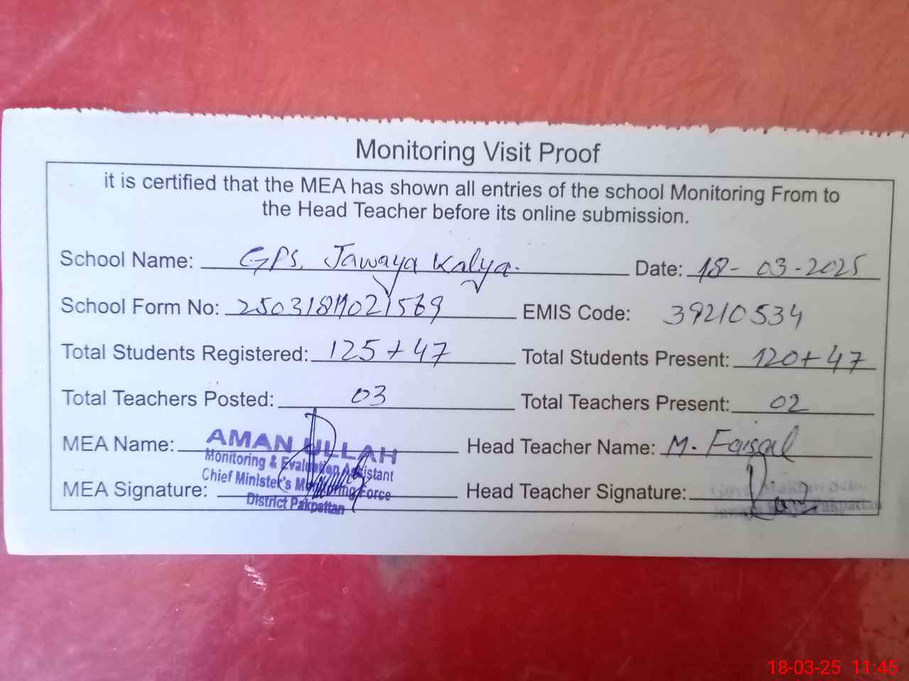 | EMIS Code: 39210534 | Name of School: GPS JAWAYAKALYA | |||