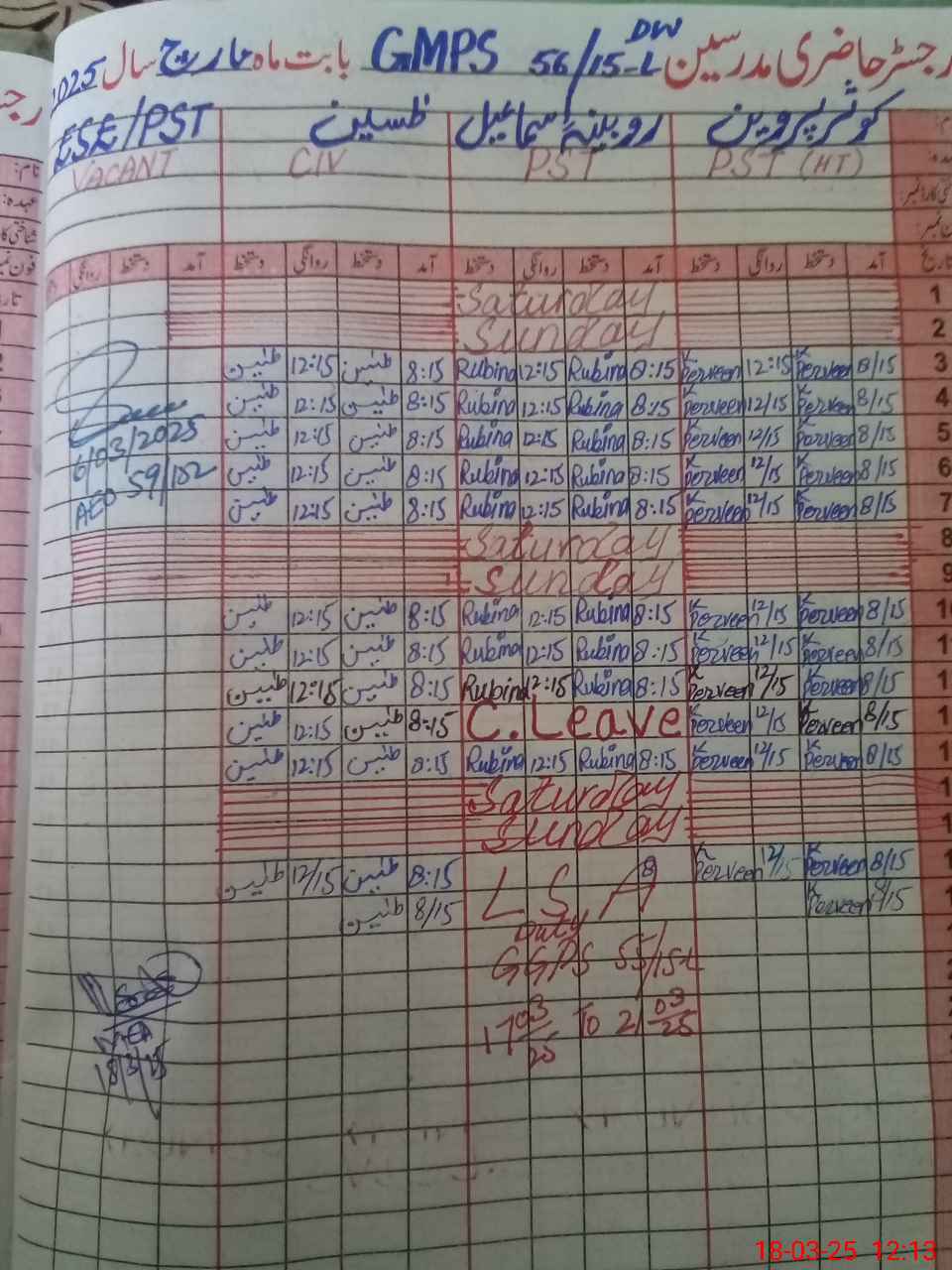 | 36**** | Ru**** Is**** | PST | Regular | 0 | 0 | 0 | 0 | 0 | 0 | 0 | 0 | 0 | Exam Duty |