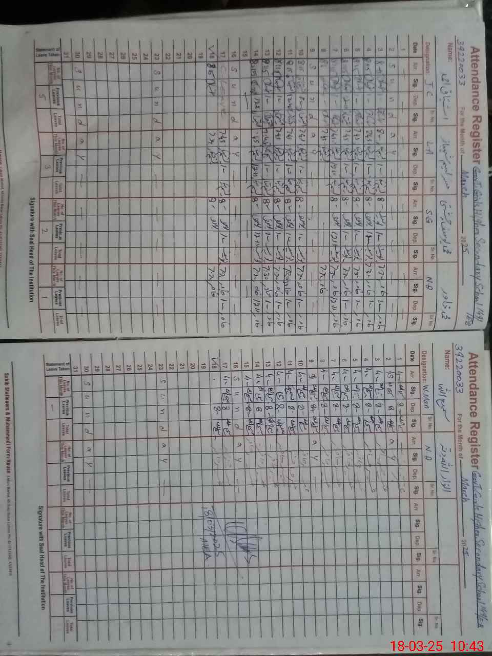 | Remarks (Use Separate Page if Required): Note NQ Anwar Allah Ditta was found absent without sanctioned leave wef 18 February 2025 | |||||