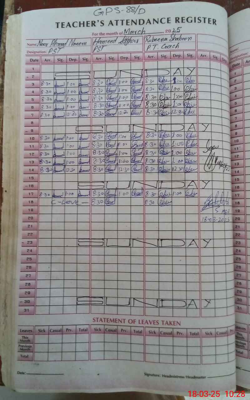 | Name: No**** Ah**** Na**** Designation: (School Headmaster's/Headmistress's) PST Phone/Cell Number: 03**** |