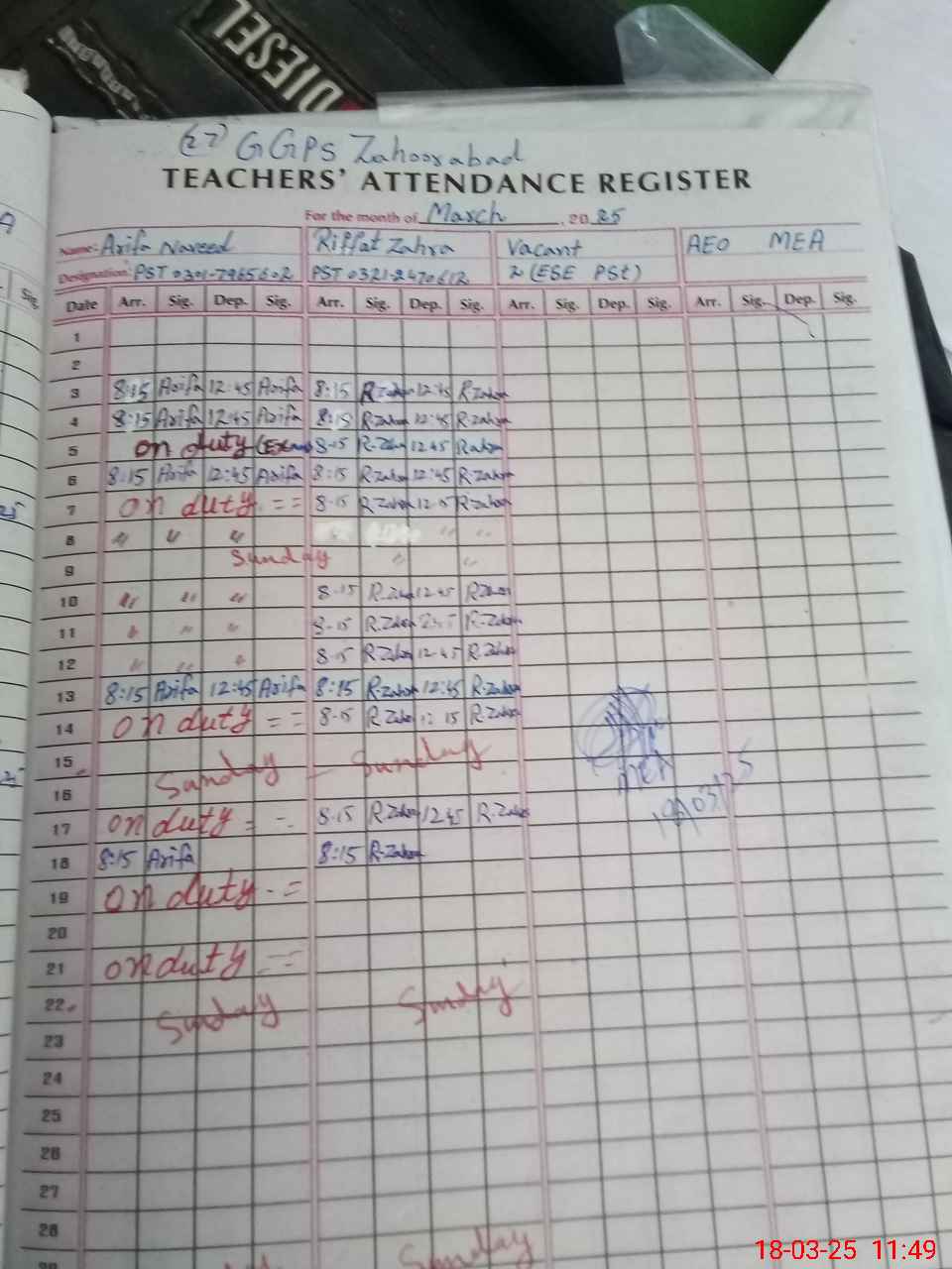 | Name: Ar**** Na**** Designation: (School Headmaster's/Headmistress's) PST Phone/Cell Number: 03**** |