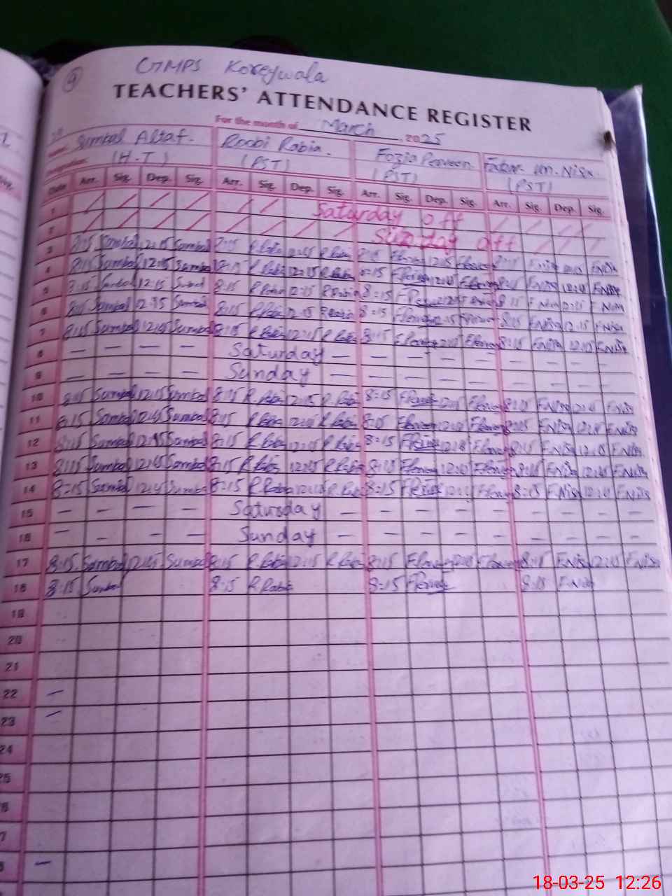| Name: SU**** AL**** Designation: (School Headmaster's/Headmistress's) PST Phone/Cell Number: 03**** |