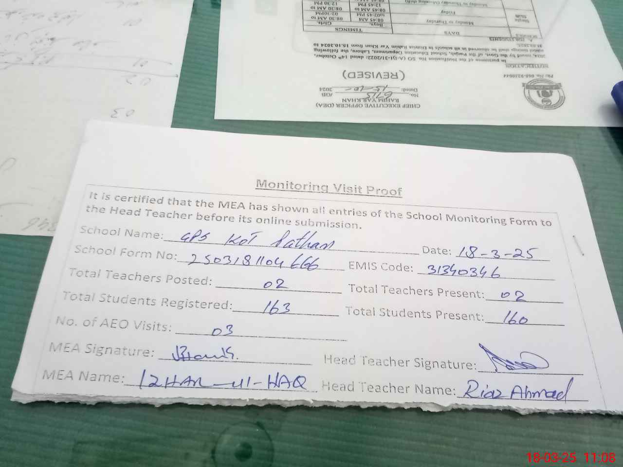 | EMIS Code: 31340346 | Name of School: GPS KOT PATHAN | |||