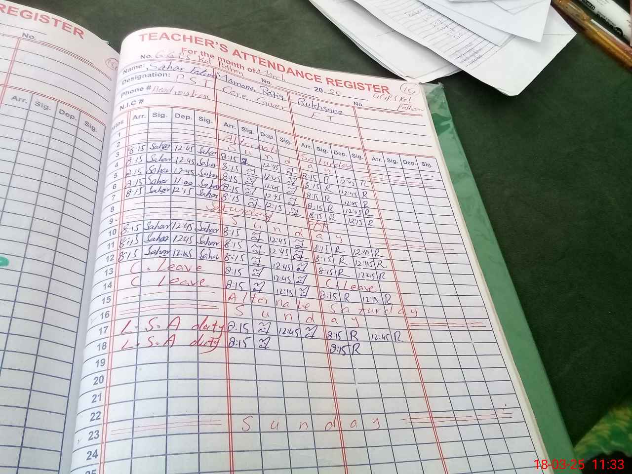 | 31**** | Sa**** Fa**** | PST | Regular | 4 | 0 | 0 | 0 | 0 | 0 | 0 | 0 | 4 | Exam Duty |
