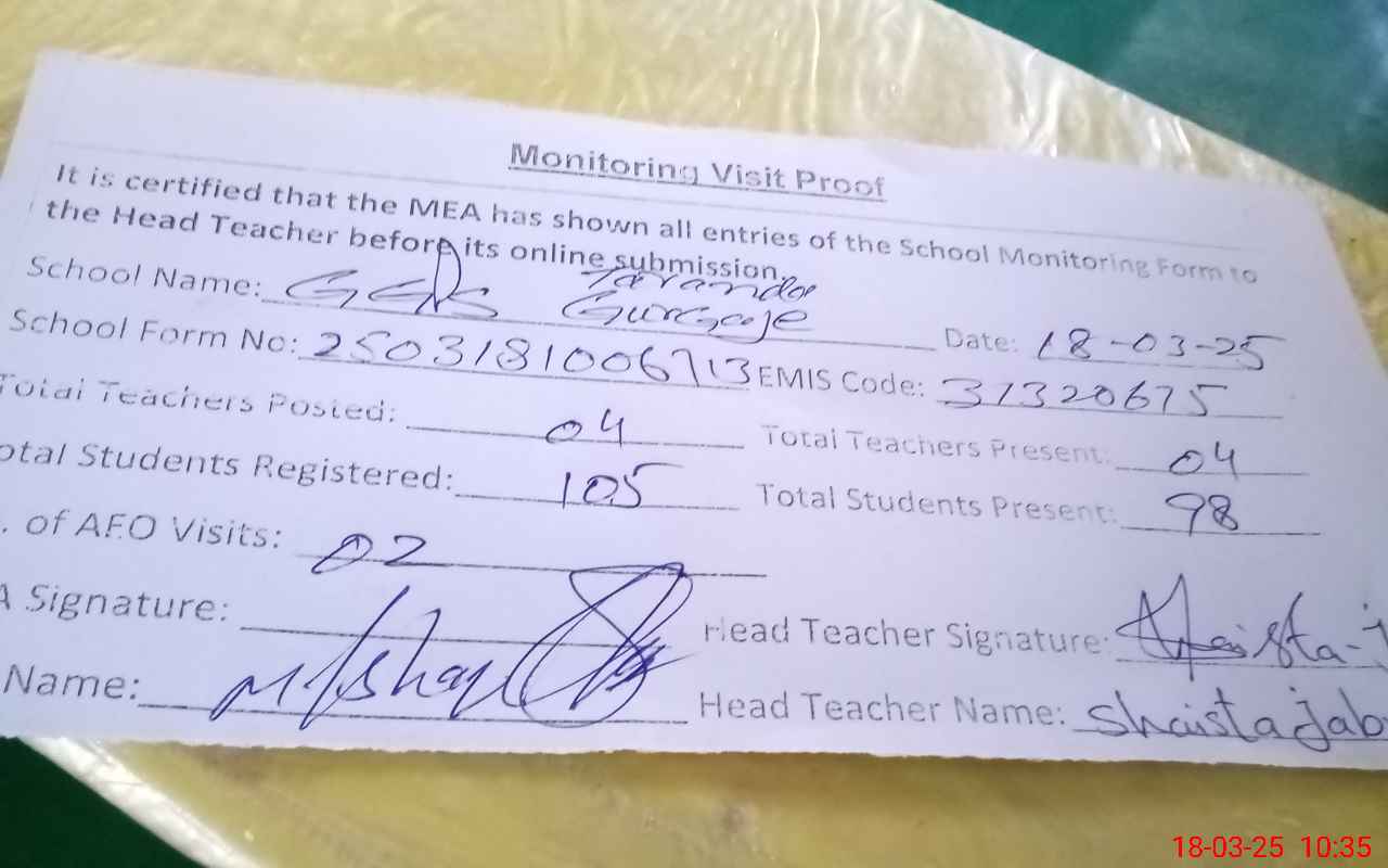 | EMIS Code: 31320675 | Name of School: GGPS TARNDA GOUR GAIJ | |||