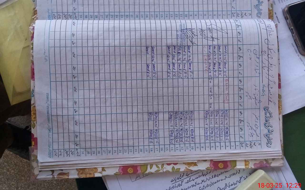 | CNIC | Full Name | Designation | R/C | Absence During Last Calender Month |
