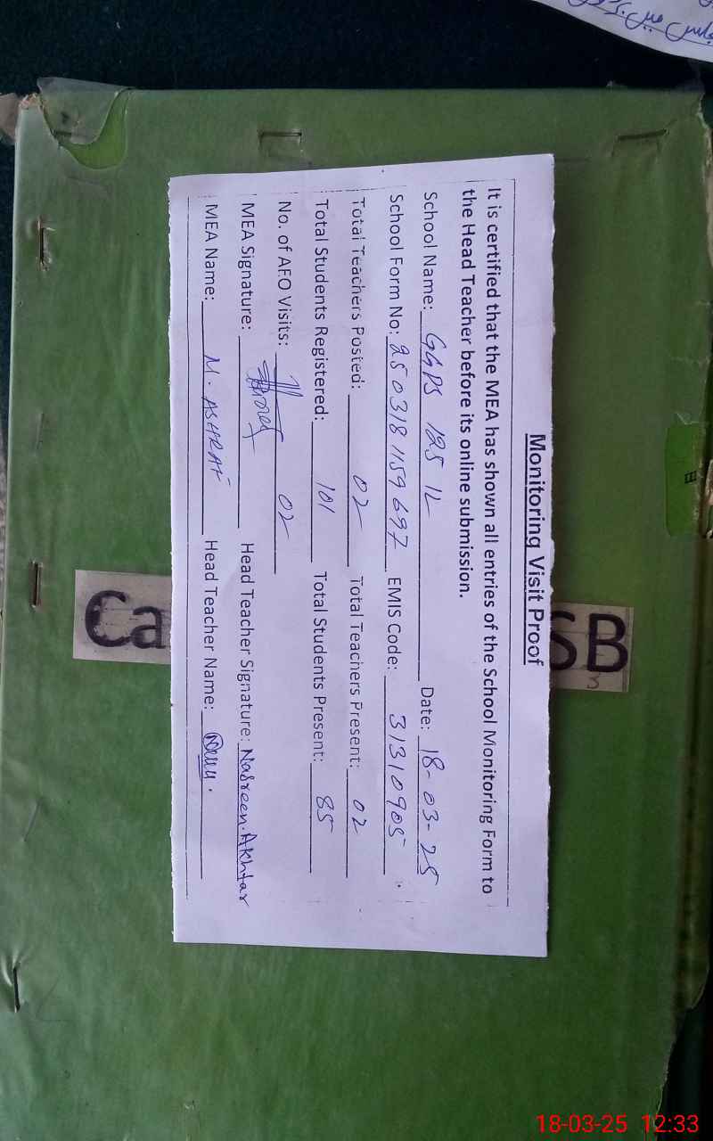 | Certified that this School was Inspected by the Undersigned MEA/DMO Today and the Information Stated Above is as Per Record. | |||||
