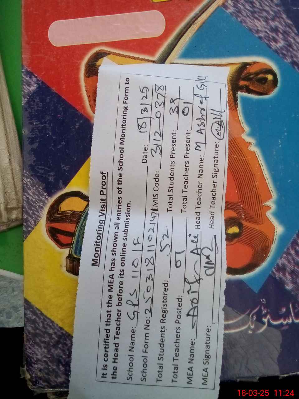 | EMIS Code: 31120378 | Name of School: GPS CHAK NO 110 FA | |||