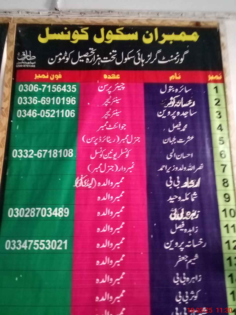 | EMIS Code: 38460109 | Name of School: GGHS TAKHT HAZARA | |||